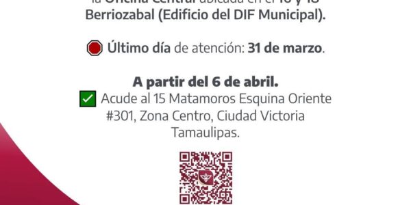 Marza 31 de 2026 Ciudad Victoria, Tamaulipas.– El Instituto de Defensoría Pública del Estado de Tamaulipas informa a la ciudadanía sobre el cambio de domicilio de sus oficinas en Ciudad Victoria, con el objetivo de fortalecer la atención y mejorar…
