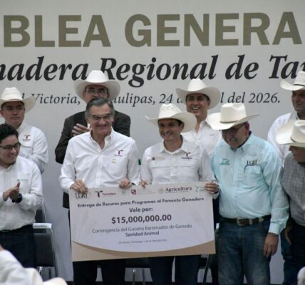 Abril 24 de 2026 Ciudad Victoria, Tamaulipas.– Con el propósito de fortalecer la productividad del sector pecuario en la entidad, la Secretaría de Desarrollo Rural, Pesca y Acuacultura, en coordinación con la Unión Ganadera Regional de Tamaulipas (UGRT), llevó a…