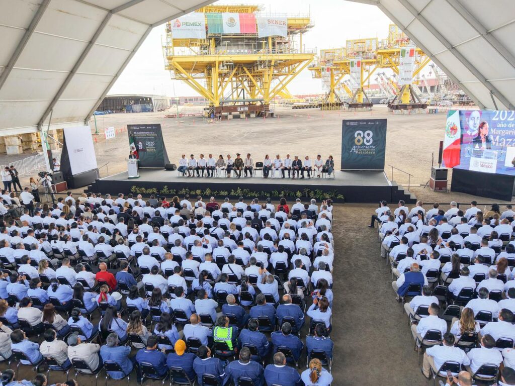 Agregó que, a un año de las reformas constitucionales en materia energética, los resultados son positivos: reducción de la deuda de Pemex en un año en 13 por ciento; el pago a proveedores prácticamente alcanzó el 100 por ciento; se transforman diariamente casi 1.3 millones de barriles de crudo en gasolinas y diésel; y en 2025 se produjeron 25 por ciento más fertilizantes.