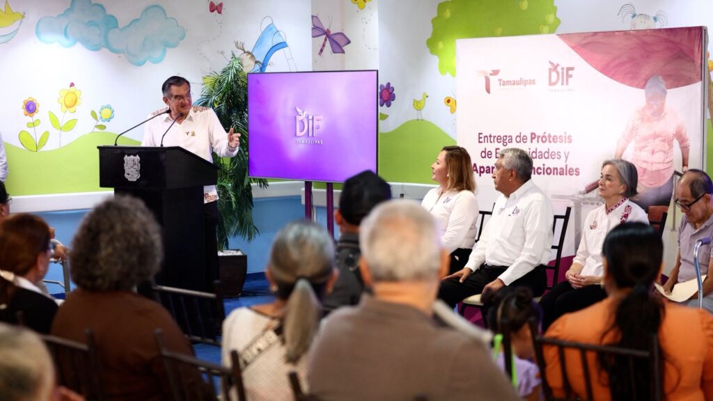 Ciudad Victoria, Tamaulipas.- Con el compromiso de mejorar la calidad de vida de las personas con discapacidad, el gobernador Américo Villarreal Anaya y la presidenta del Sistema DIF Tamaulipas, la doctora María de Villarreal, entregaron prótesis y aparatos funcionales a niñas, niños, jóvenes, adultos y personas mayores que debido a enfermedades o accidentes, perdieron alguna de sus extremidades, a fin de que logren recuperar su movilidad, autonomía y bienestar.