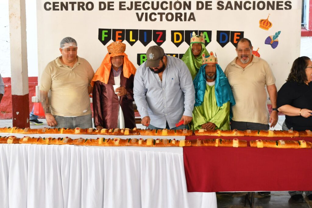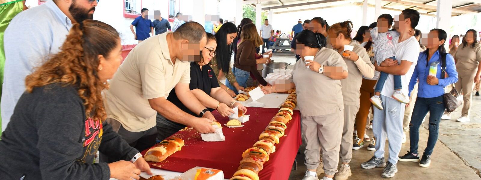 Ciudad Victoria, Tamaulipas.- Siguiendo la tradición anual en el Centro de Ejecución de Sanciones (CEDES) de Ciudad Victoria, personas privadas de la libertad (PPLs) y sus familias compartieron una mega Rosca de Reyes, elaborada por la población penitenciaria laboralmente activa en el área de panadería.