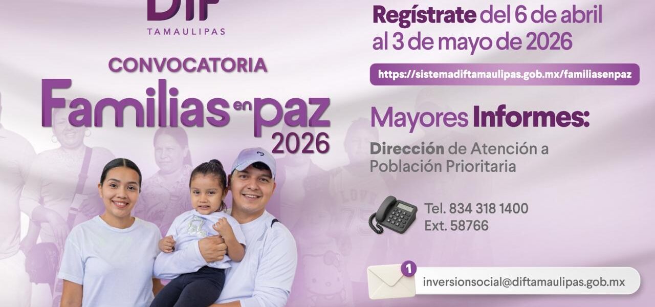 DIF Tamaulipas mantiene abierta la convocatoria “Familias en Paz 2026”