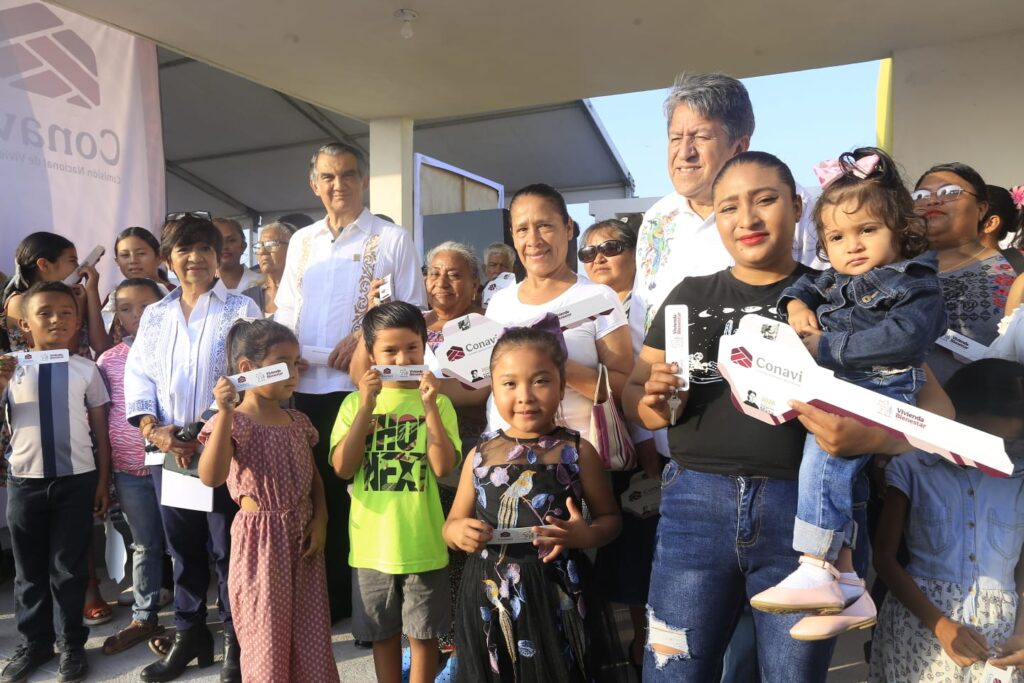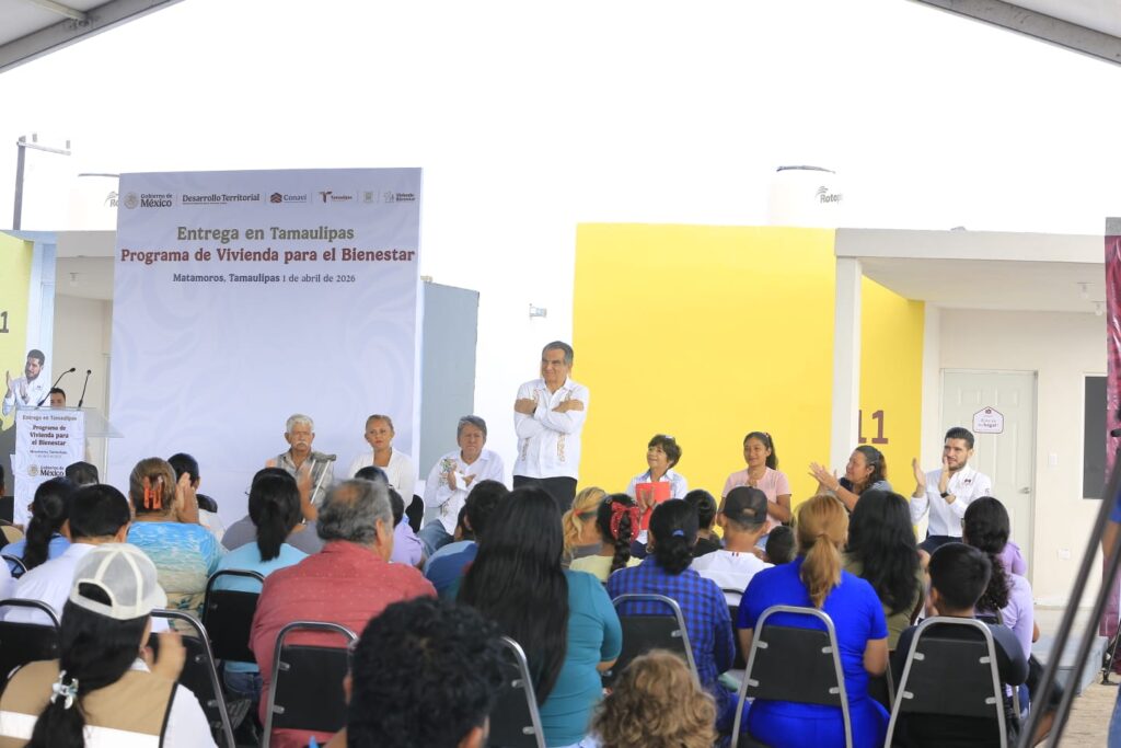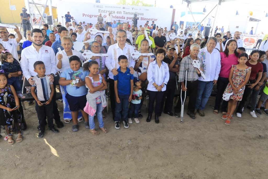 Matamoros, Tamaulipas.- Tamaulipas refrendó su liderazgo nacional en el programa de Vivienda para el Bienestar, al entregar en el desarrollo habitacional El Mezquital, 19 casas nuevas construidas por la Comisión Nacional de Vivienda para familias de pescadores, en un evento encabezado por la presidenta Claudia Sheinbaum, en enlace virtual con el gobernador Américo Villarreal Anaya.