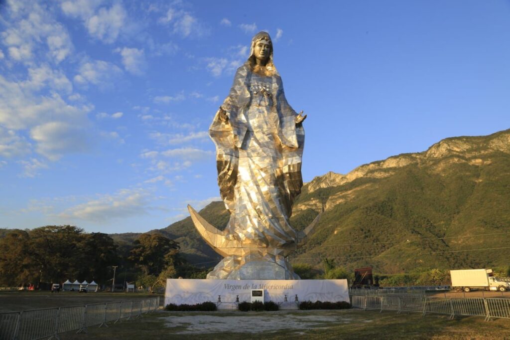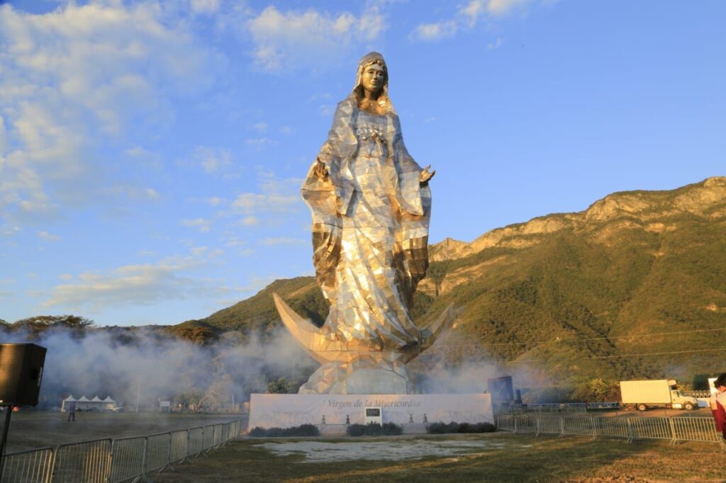 Entregan Américo y María escultura monumental de la Virgen de la Misericordia en El Chorrito
