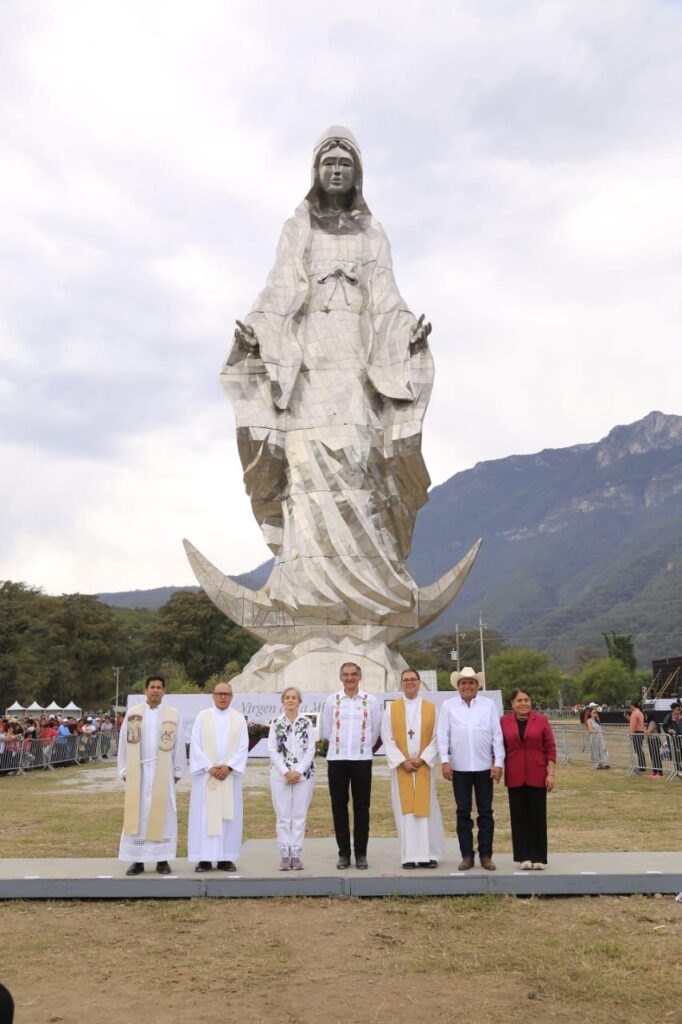 “La nueva imagen de la Virgen, más que una obra, es un símbolo renovado de la identidad espiritual de Tamaulipas; representa la fe de miles de personas, la esperanza de un pueblo noble y la fraternidad que nos permite caminar juntos”, dijo, al cortar el listón inaugural y depositar una ofrenda floral al pie de la obra de más de 30 metros de altura.