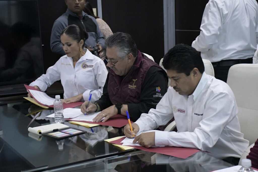 Durante la firma estuvieron presentes el subsecretario de Pesca y Acuacultura, Jorge de Jesús Montagner Mendoza; y los alcaldes municipales Humberto Hinojosa, de Villa de Casas; Nataly García Díaz, de Díaz Ordaz; Gladys Magali Vargas Rangel, de Miquihuana; Sindy Paoleth Ramírez Monita, de Palmillas; Rene Lara Cisneros, de Tula, entre otros por mencionar, además de directores de Desarrollo Rural municipales.
