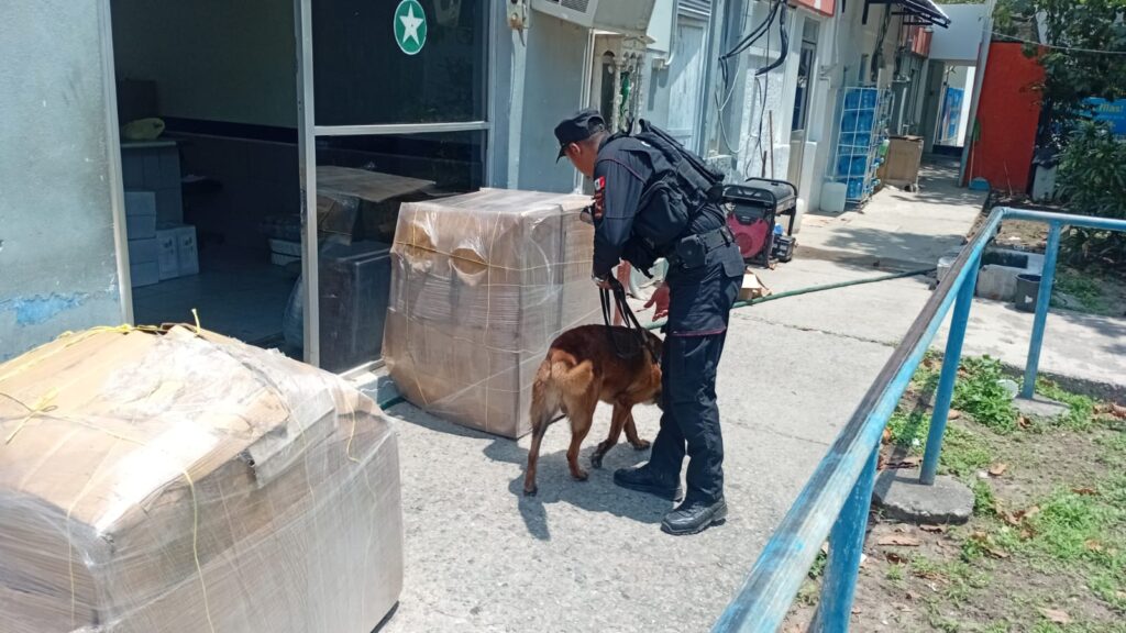 Durante la jornada, el binomio canino integrado por el ejemplar “Flash”, especializado en la detección de narcóticos, llevó a cabo recorridos de inspección en pasillos, salas de espera, andenes y áreas comunes de la terminal.