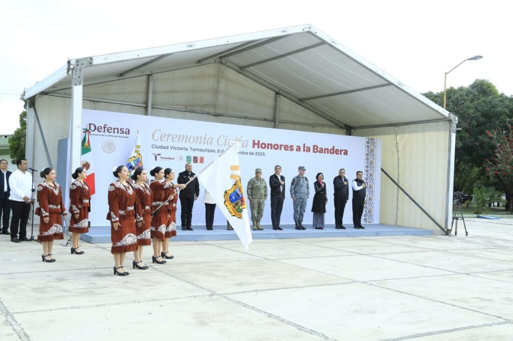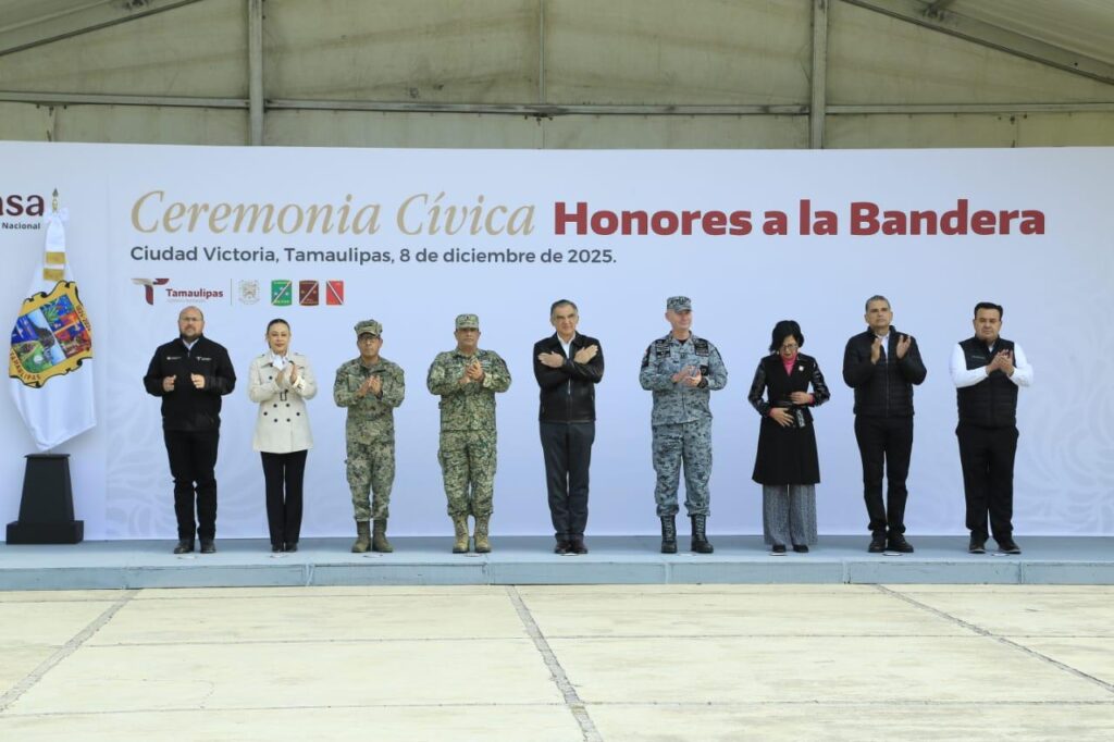 Durante su mensaje, el gobernador también reiteró su reconocimiento a las Fuerzas Armadas por el valioso servicio que brindan en favor de la paz, la seguridad y la transformación actual que se vive en México y Tamaulipas.