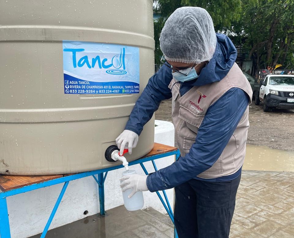 Ciudad Victoria, Tamaulipas.-Para dar seguimiento a la instrucción del gobernador Américo Villarreal Anaya y otorgar seguridad a la población afectada por las lluvias, la autoridad sanitaria se mantiene activa y al pendiente de la evolución de los daños causados por la tormenta tropical Barry, en donde se realizan las acciones de verificación y saneamiento básico en las áreas encharcadas y en los brotes de aguas negras que se han registrado.