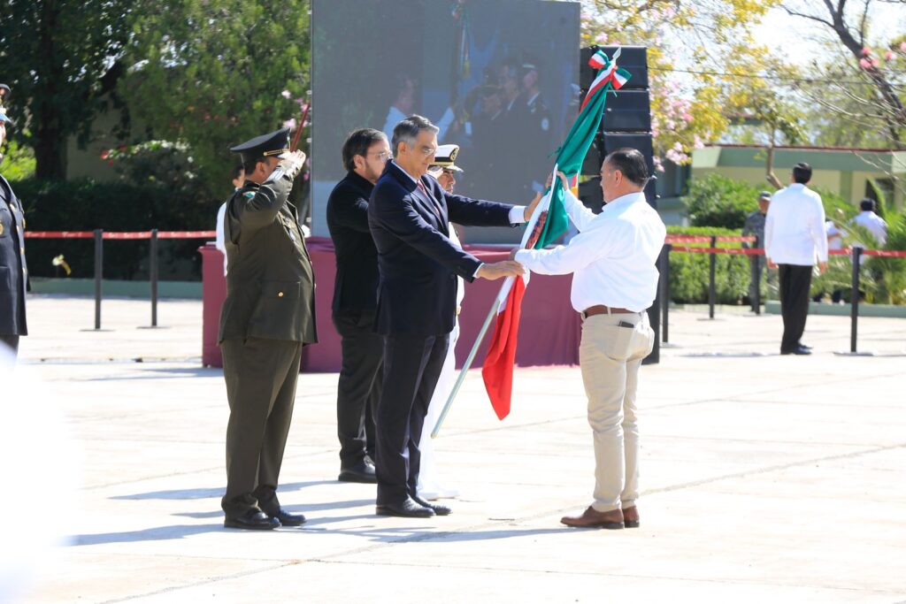 “Acompañamos con todo el orgullo y el sentido de lealtad y pertenencia que produce en cada uno de nosotros la Bandera Nacional, que es el símbolo por excelencia que entraña nuestra mexicanidad, que evoca lo mejor de nuestra historia y que es el estandarte que ha transitado nuestras transformaciones nacionales, representando el heroísmo de hombres y mujeres que se entregaron su vida para que hoy podamos disfrutar el país que tenemos”, manifestó el ejecutivo tamaulipeco.