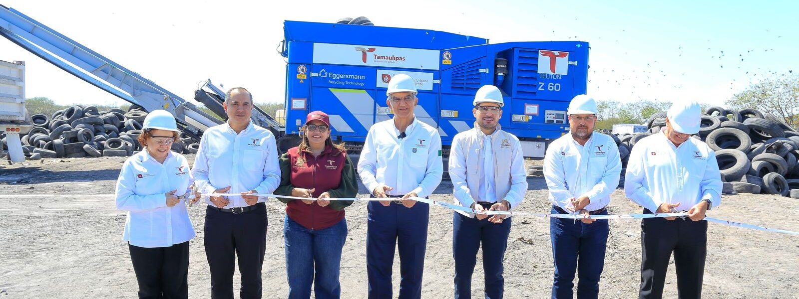 Matamoros, Tamaulipas.- Como parte de su gira de trabajo en Matamoros, el gobernador Américo Villarreal Anaya puso en operación la Planta Trituradora de Neumáticos en Desuso, mediante la adquisición de la máquina “Teutón”, con una inversión de 30 millones de pesos.
