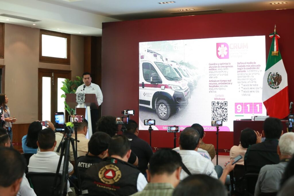 Durante la presentación de la Estrategia Interinstitucional de Seguridad y Asistencia Turística, Semana Santa 2026, que estará en operación hasta el próximo 18 de abril, y acompañado por los secretarios de Seguridad Pública, Turismo, el coordinador estatal de Protección Civil y el titular del Centro de Regulación de Urgencias Médicas, el gobernador indicó que se trata de un amplio despliegue que contempla la movilización de elementos, recursos institucionales y distintos equipos para brindar la mejor atención a nuestros visitantes.