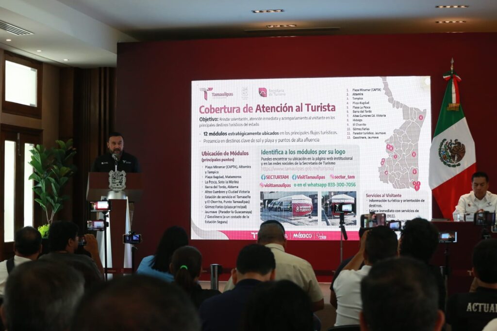 Ciudad Victoria, Tamaulipas.- Tamaulipas cuenta con un amplio despliegue para brindar seguridad, asistencia y la mejor atención a las y los turistas que arriban a nuestro estado por el periodo vacacional de Semana Santa, a fin de que disfruten y gocen de la mejor manera su estancia en territorio tamaulipeco, afirmó el gobernador Américo Villarreal Anaya.