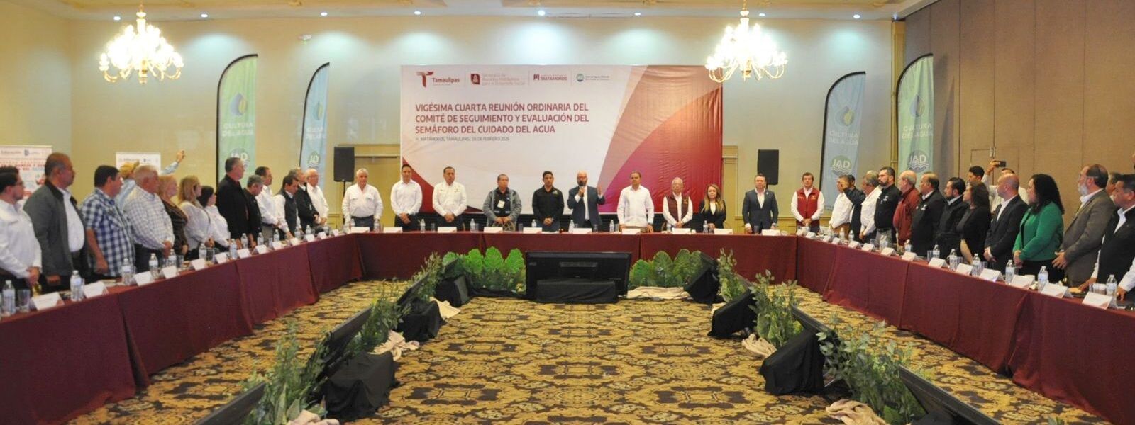 Matamoros, Tamaulipas.— En el marco de la estrategia hídrica que impulsa el gobernador Américo Villarreal Anaya, se llevó a cabo la Vigésima Cuarta Reunión Ordinaria del Comité de Seguimiento y Evaluación del Semáforo del Cuidado del Agua, encabezada por el secretario de Recursos Hidráulicos, Raúl Quiroga Álvarez.