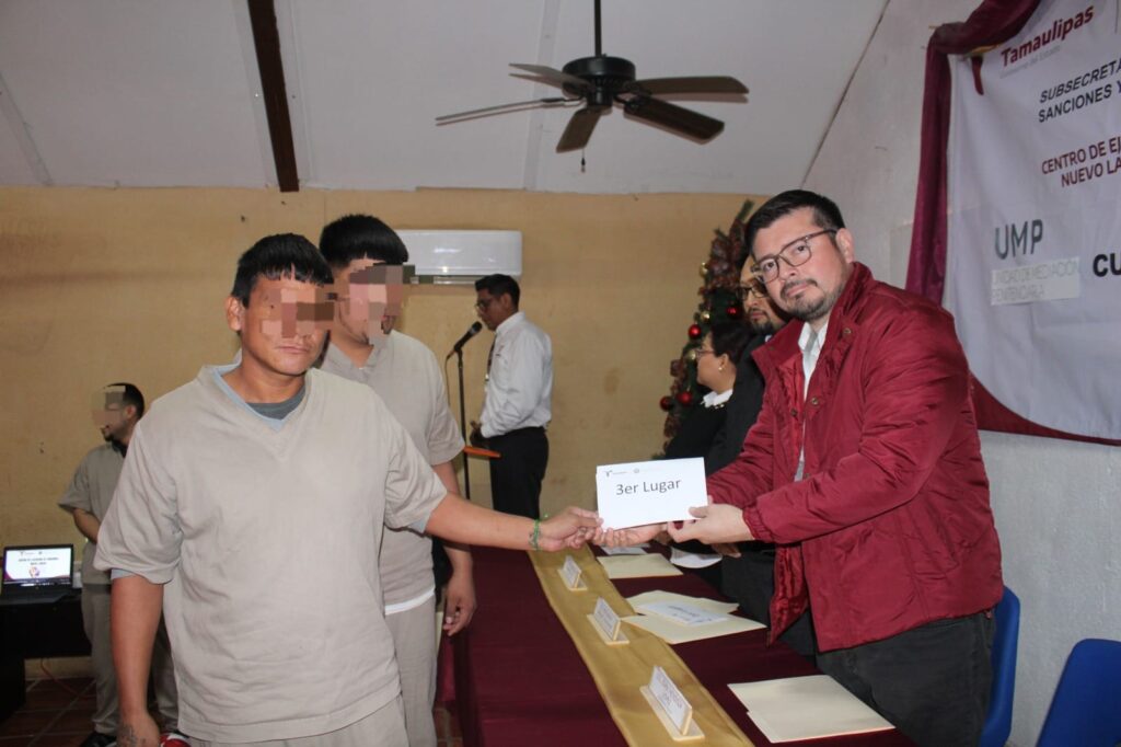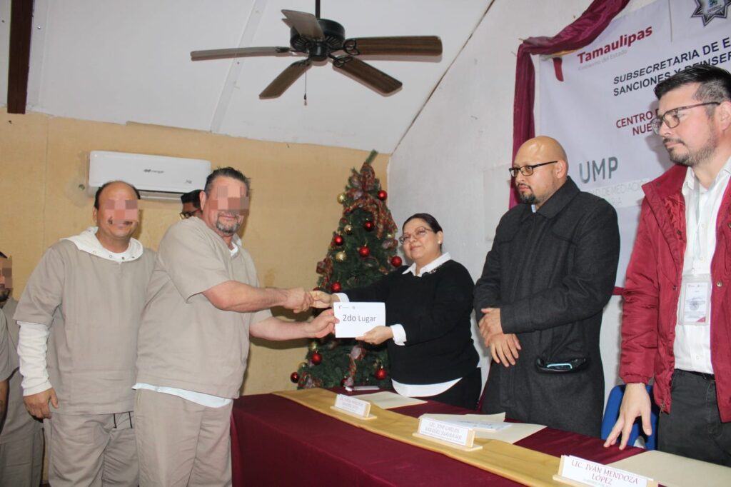 Nuevo Laredo, Tamaulipas.- El Centro de Ejecución de Sanciones (CEDES) del municipio de Nuevo Laredo entregó reconocimientos a las personas privadas de la libertad (PPLs) que participaron en un concurso interno de artes visuales y premios económicos a quienes obtuvieron los primeros lugares.