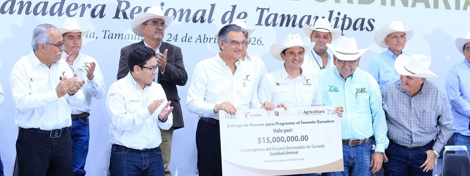Al presidir la clausura de la LXXXIX Asamblea General Ordinaria de la Unión Ganadera Regional de Tamaulipas, acompañado por Francisco Javier Calderón Elizalde, director en jefe del SENASICA, y Homero García de la Llata, presidente de la Confederación Nacional de Organizaciones Ganaderas, el gobernador destacó que gracias al trabajo conjunto entre el Gobierno del Estado y el sector ganadero, se han adoptado medidas que incluso han sido reconocidas por autoridades norteamericanas para afrontar la contingencia del gusano barrenador del ganado.