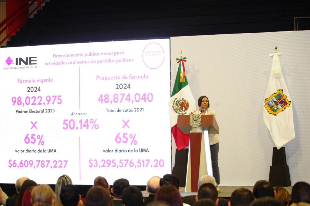 Tras la lectura de las conclusiones por cada mesa de trabajo, participó la consejera electoral del Instituto Nacional Electoral (INE), Norma Irene de la Cruz Magaña, quien, al hacer uso de la palabra, compartió dos propuestas relacionadas con el financiamiento a los partidos políticos y los mecanismos de participación ciudadana.