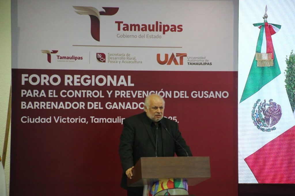 Al presidir el Foro Regional para el Control y Prevención del Gusano Barrenador del Ganado celebrado, la tarde de este viernes, en el Aula Magna de la Facultad de Medicina Veterinaria y Zootecnia de la UAT, el gobernador del Estado reiteró todo el apoyo de su gobierno a las acciones y al trabajo coordinado e interinstitucional para lograr que Tamaulipas mantenga su estatus de estado libre del GBG.