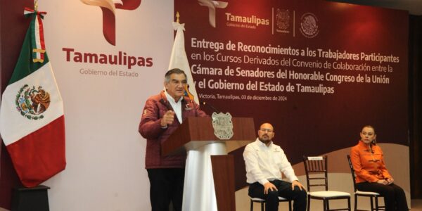 Diciembre 03 de 2024 Ciudad Victoria, Tamaulipas.- Al señalar que es prioridad para su gobierno que las y los servidores públicos se capaciten de manera continua, el gobernador de Tamaulipas, Américo Villarreal Anaya, hizo entrega de 59 reconocimientos a personal…