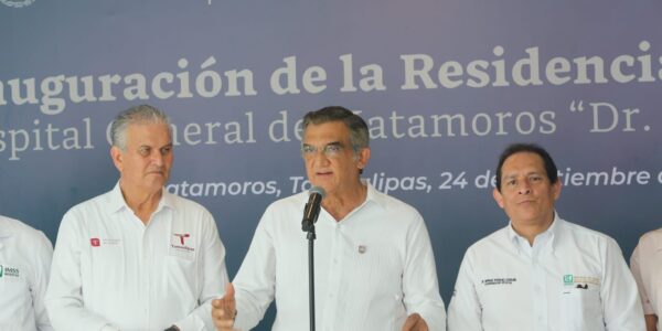 Inaugura Américo albergue y residencia en hospital de Matamoros durante enlace con el presidente AMLO
