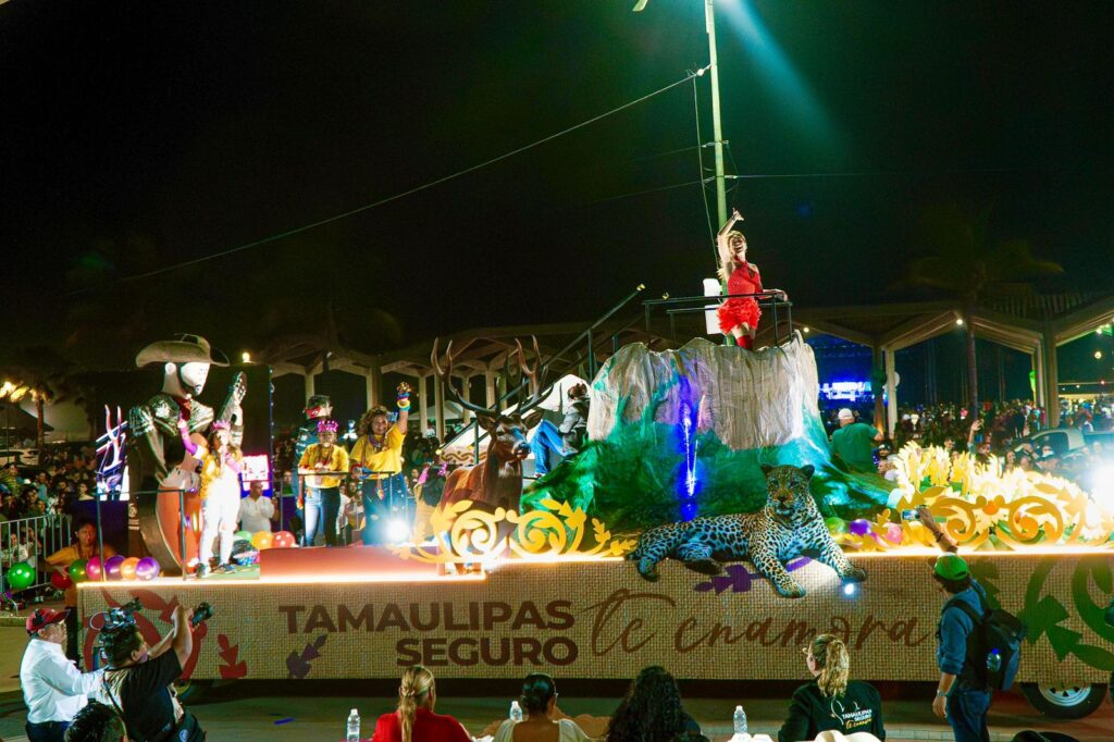 El secretario de Turismo, Benjamín Hernández Rodríguez, junto a la presidenta municipal de Tampico, Mónica Villarreal Anaya y los alcaldes de Madero, Erasmo González Robledo y Altamira, Armando Martínez Manríquez, se unieron a la fiesta entre carros alegóricos, comparsas vibrantes, disfraces espectaculares y grupos de animación.